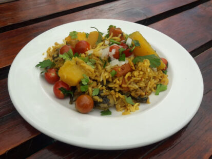 The café is open 7 days a week, from 8 Am until 5 Pm for breakfast and lunch. Meals include all-day breakfast, toasted sandwiches, and home-grown salads in season, and homemade rooster brood served with Jam and cheese.